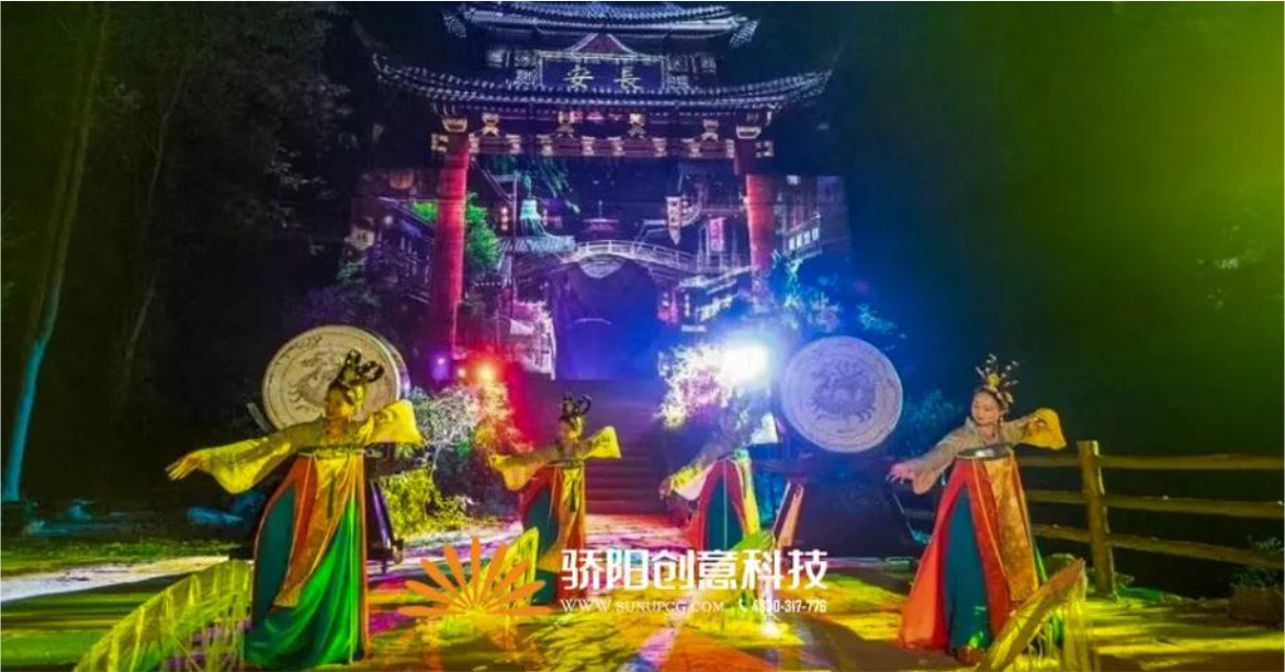 驕陽創(chuàng)意科技做為劍門關景區(qū)夜游項目的總負責公司于2019年開始展開跟華僑城的合作,從前期的設計、創(chuàng)作、執(zhí)行,幕后策劃制作團隊累計兩百余人,歷時一年的匠心制作,打造了結合千年蜀道的雄奇天險,聯(lián)合關樓、峽谷、河道、崖壁等大場景,長約1公里、覆蓋面積達90畝、瀏覽行程約60分鐘的大型沉浸式全包裹燈光演藝秀。